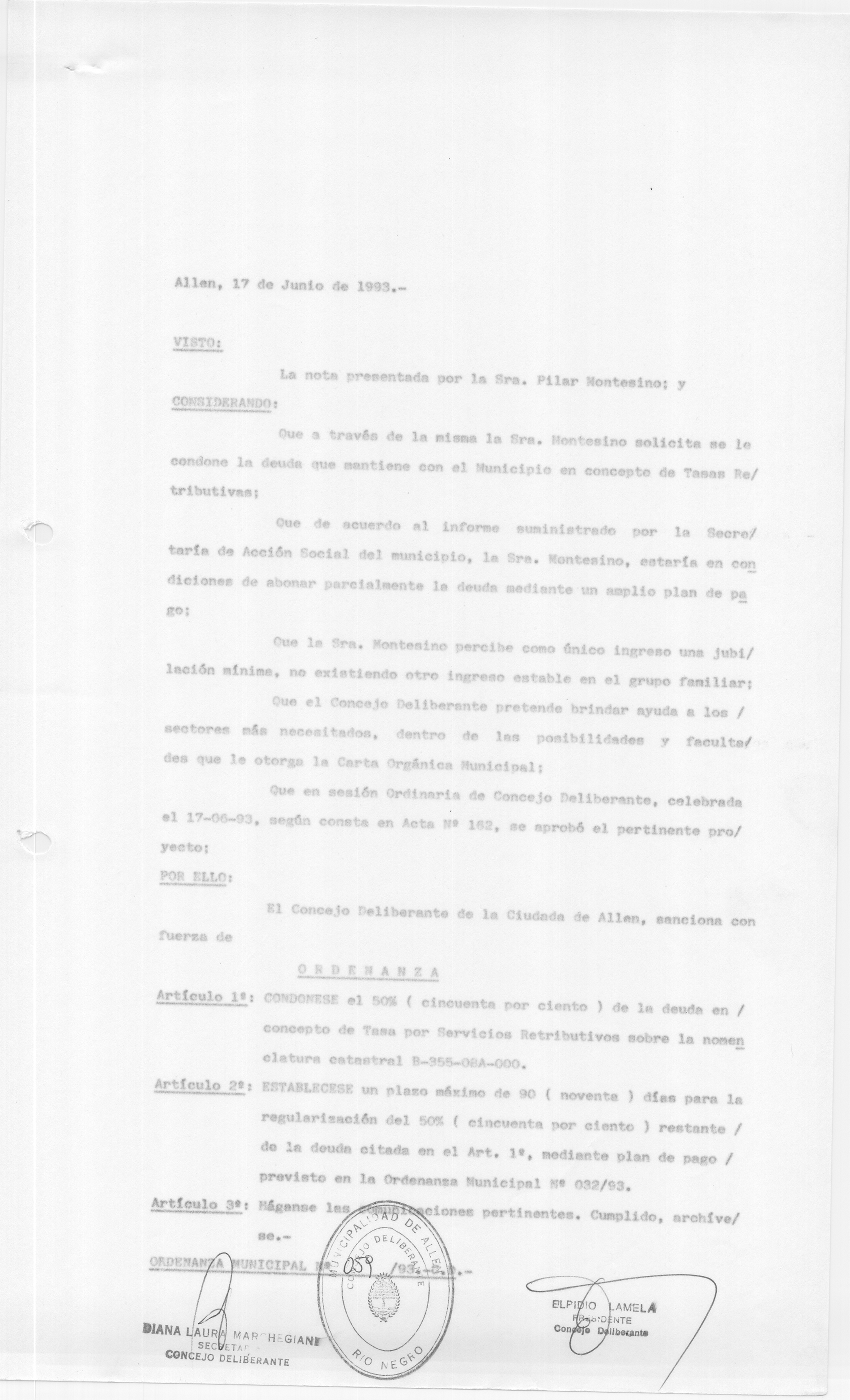 ORDENANZA N° 059/93