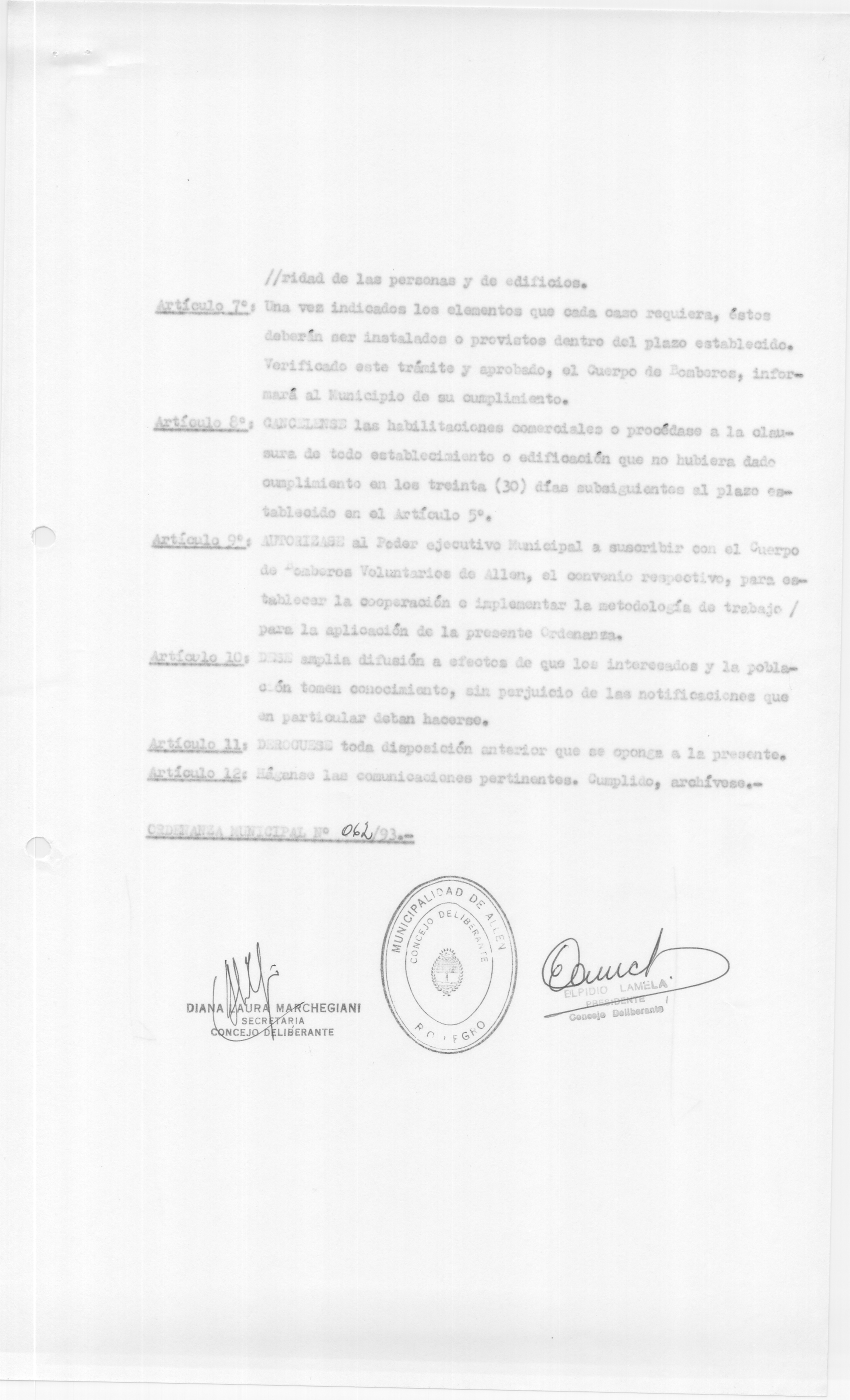 Usted seleccionó listar los archivos adjuntos de la ORDENANZA N° 062/93.