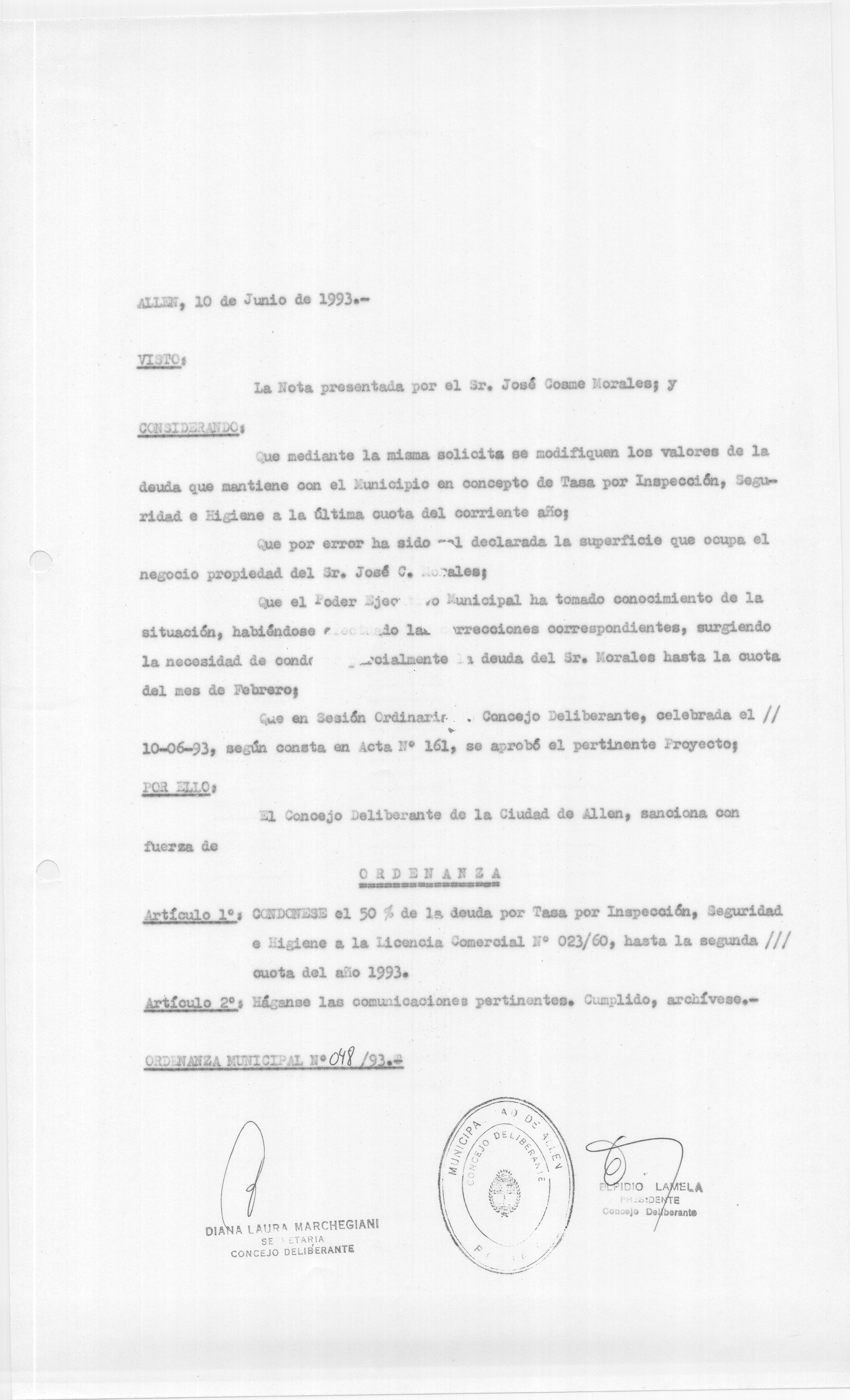ORDENANZA N° 048/93
