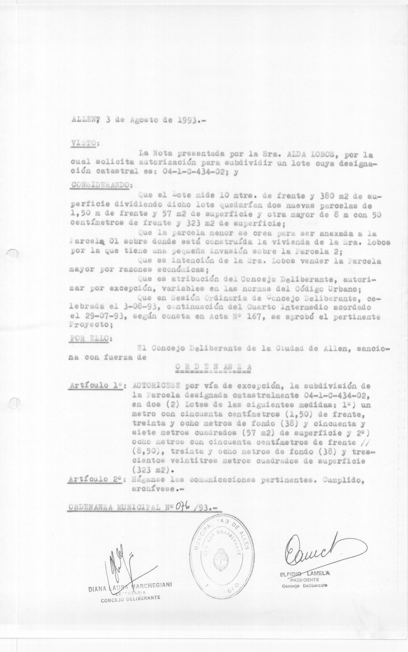 ORDENANZA N° 076/93