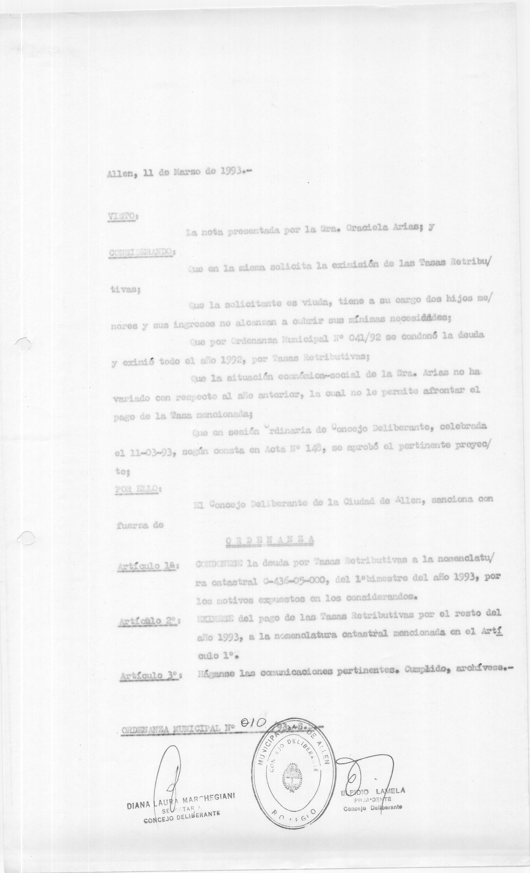 Usted seleccionó listar los archivos adjuntos de la ORDENANZA N° 010/93.
