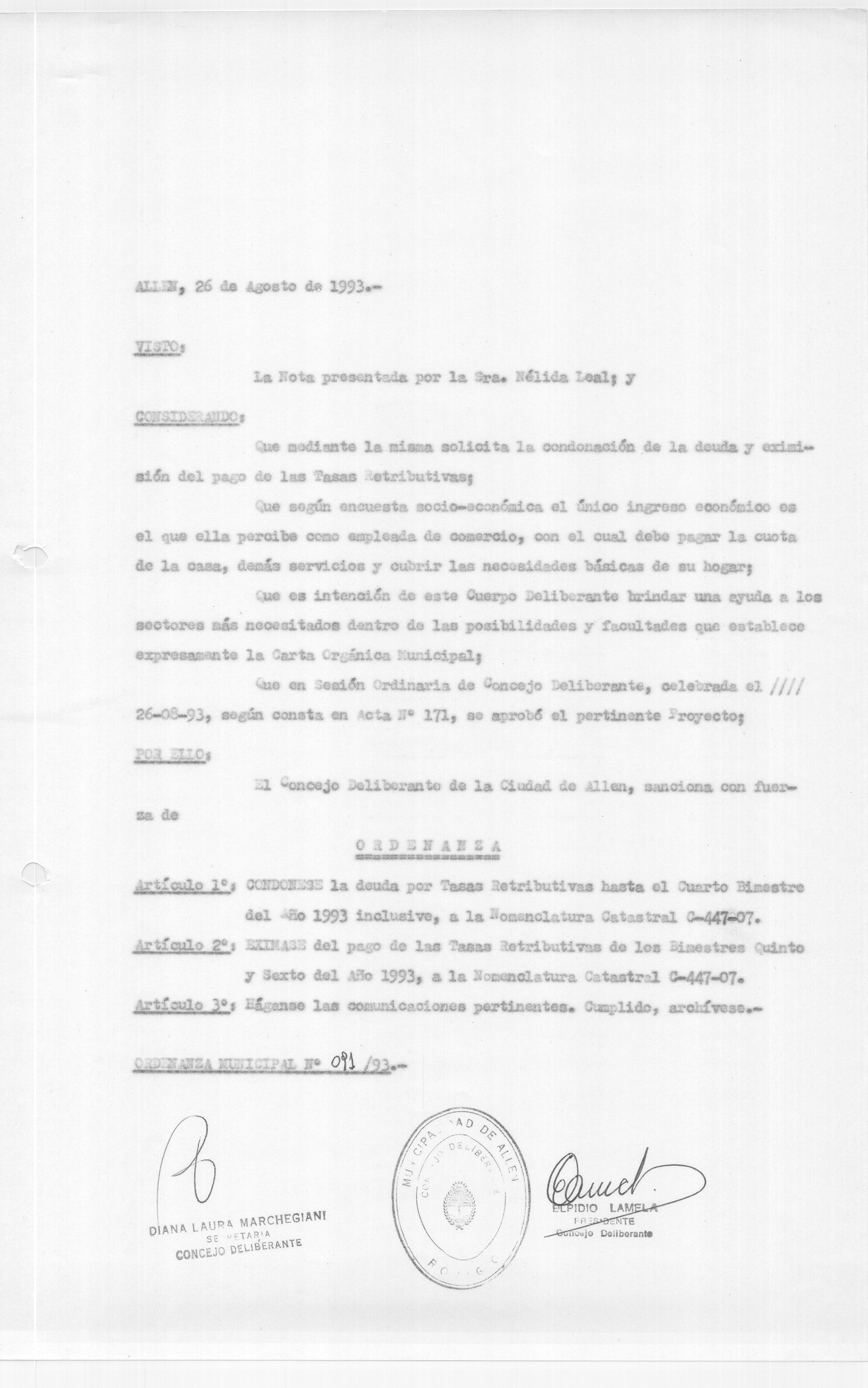 ORDENANZA N° 091/93
