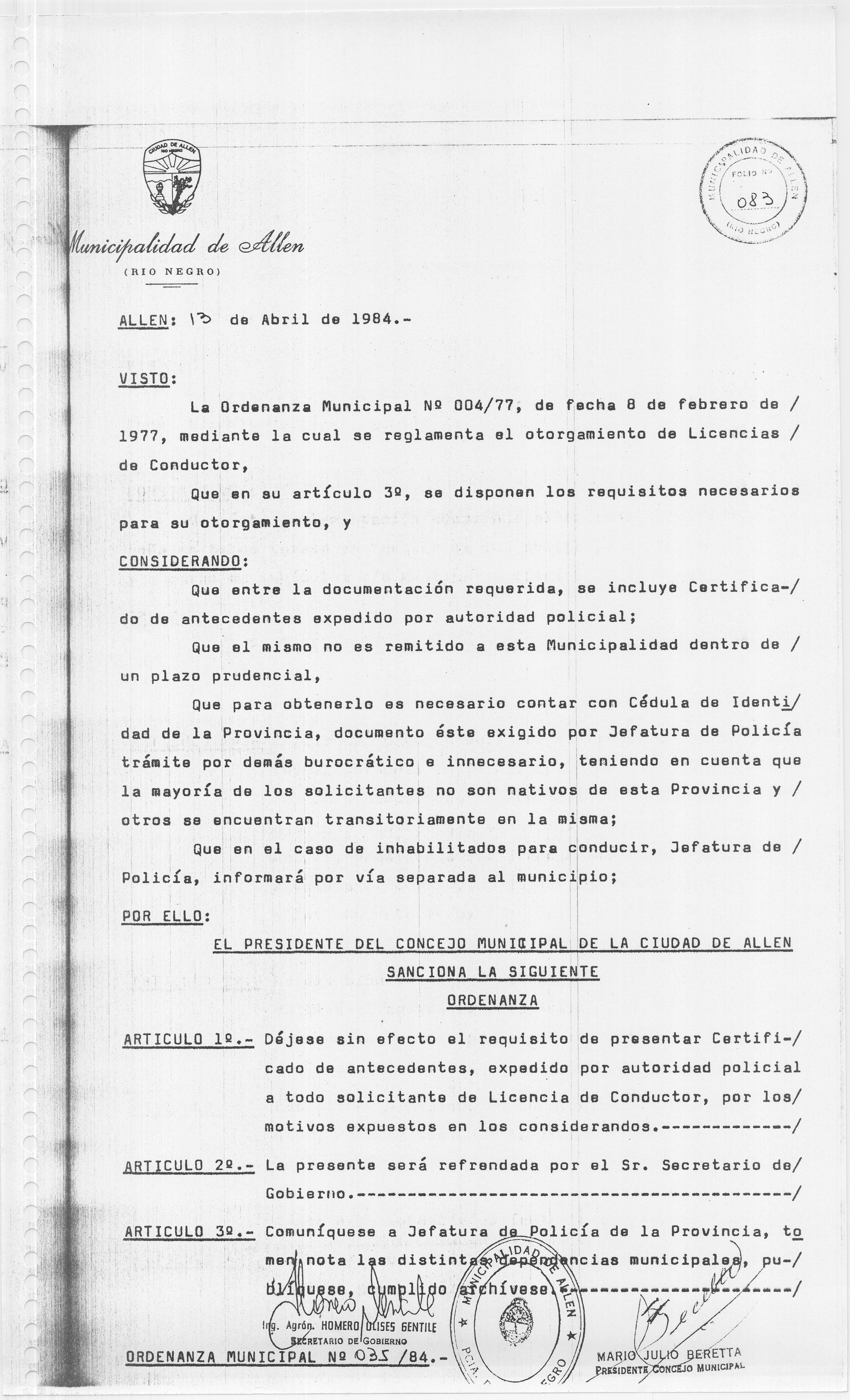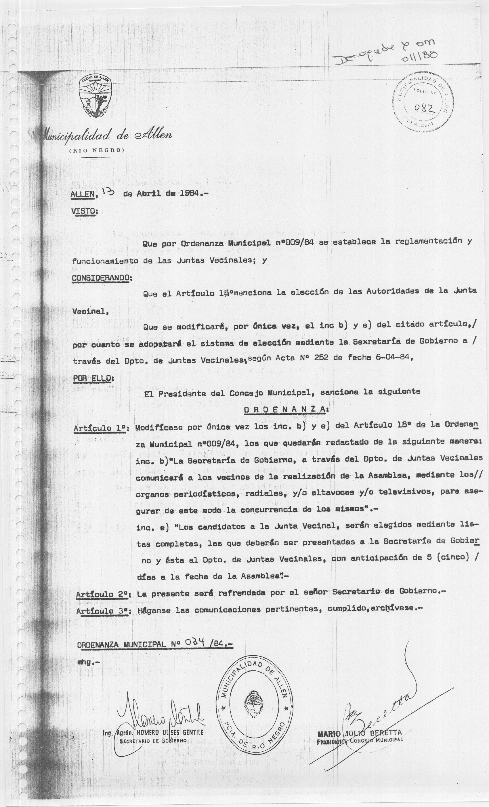 Usted seleccionó listar los archivos adjuntos de la ORDENANZA N° 034/84.