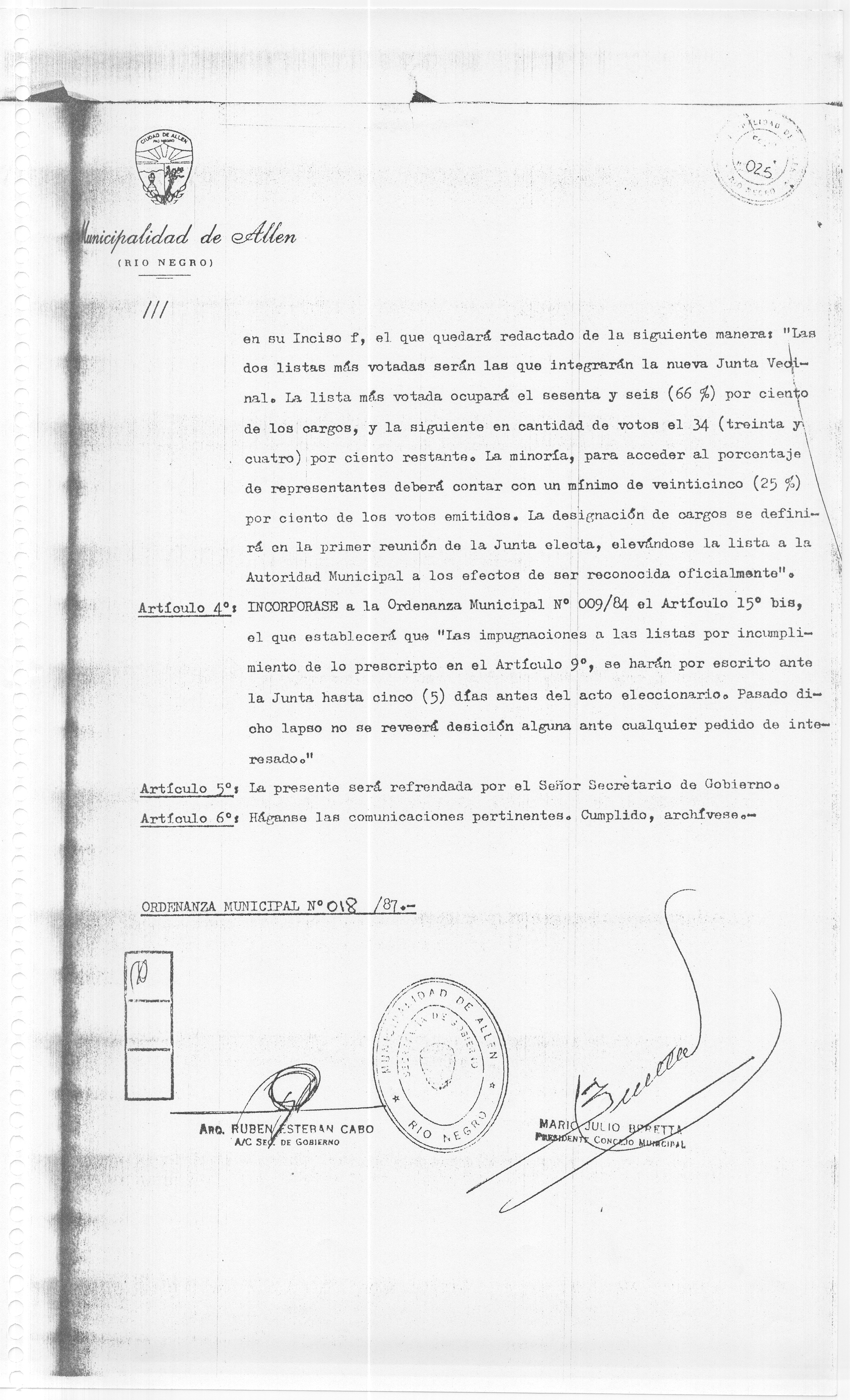 Usted seleccionó listar los archivos adjuntos de la ORDENANZA N° 018/87.