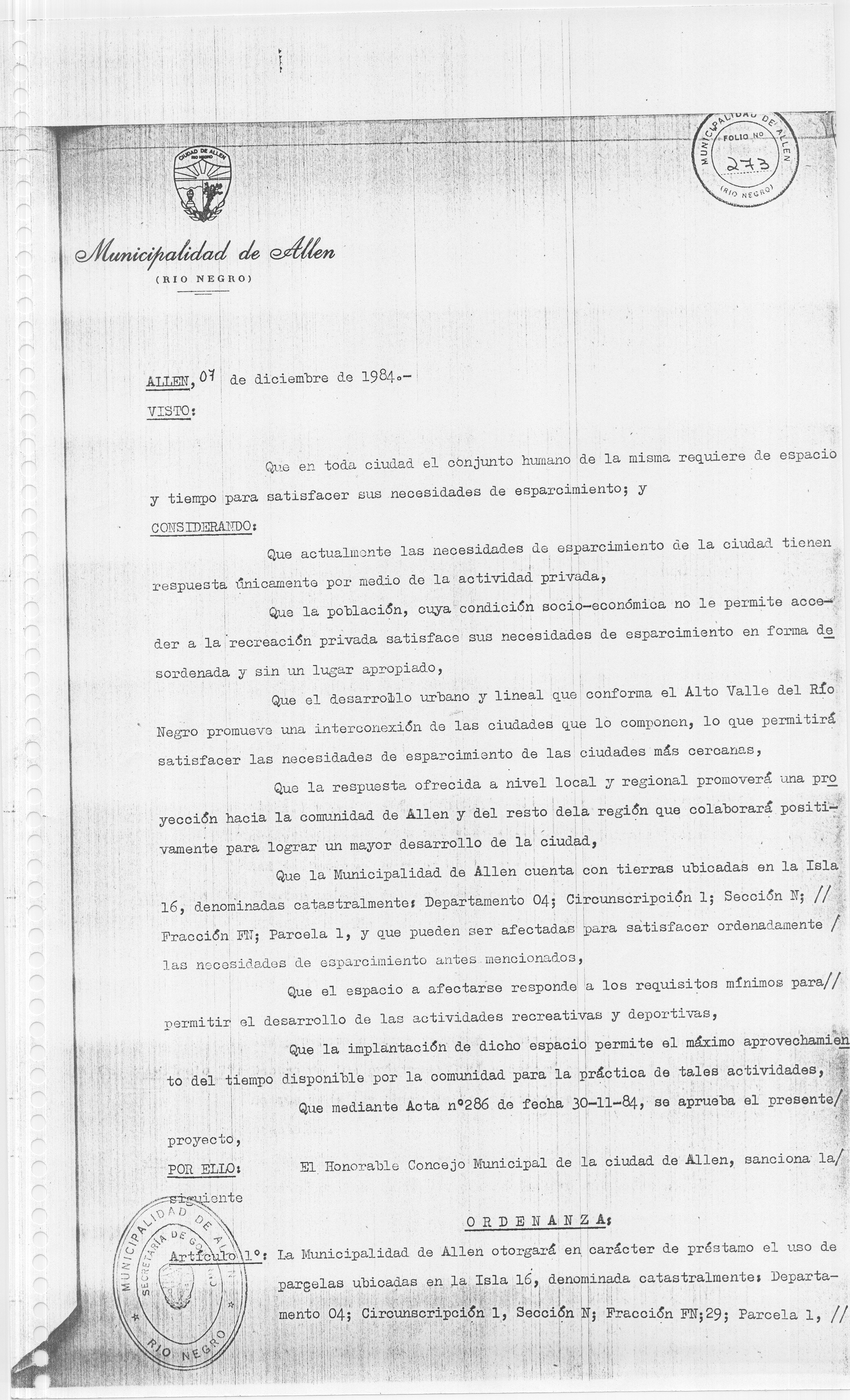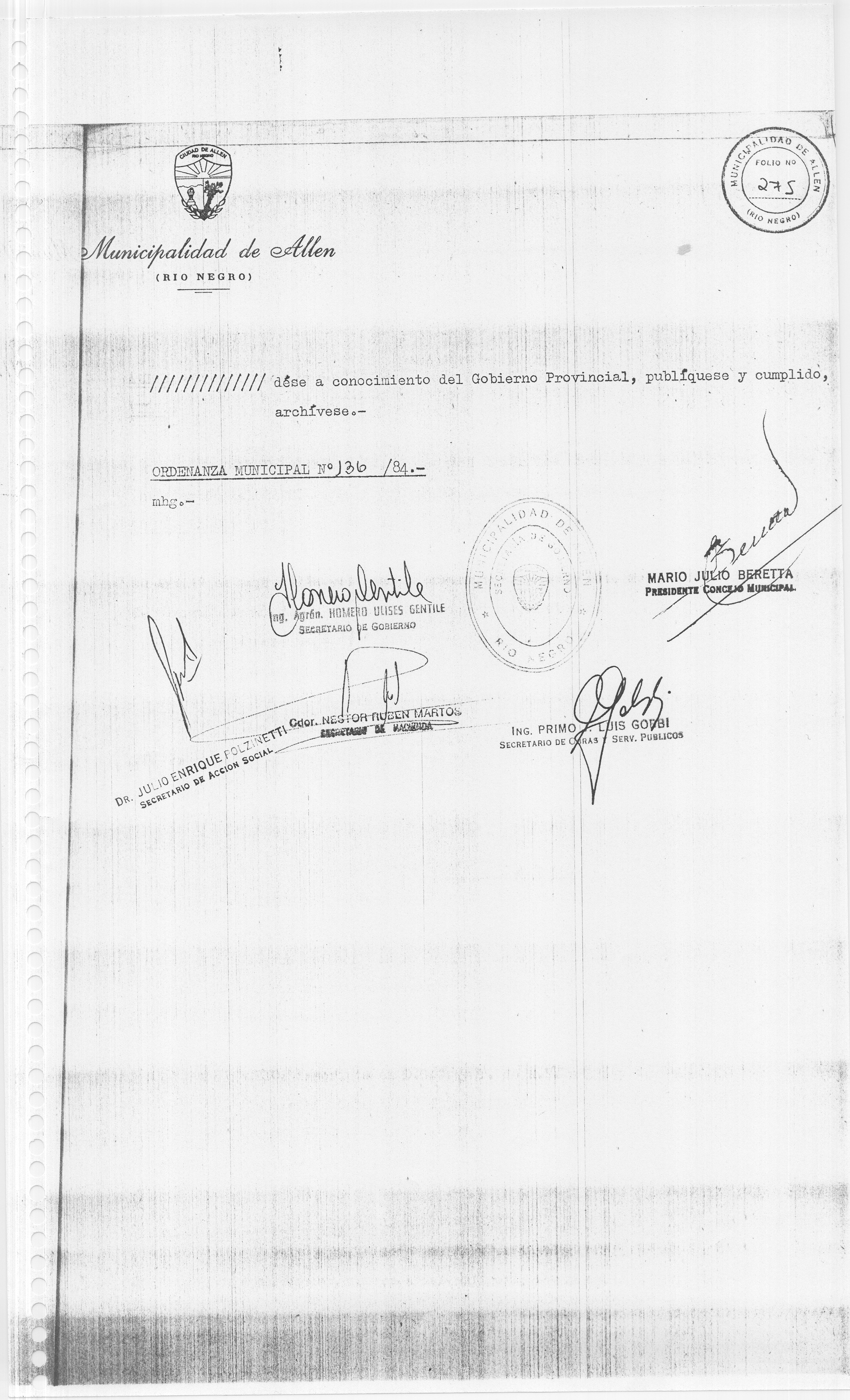Usted seleccionó listar los archivos adjuntos de la ORDENANZA N° 136/84.