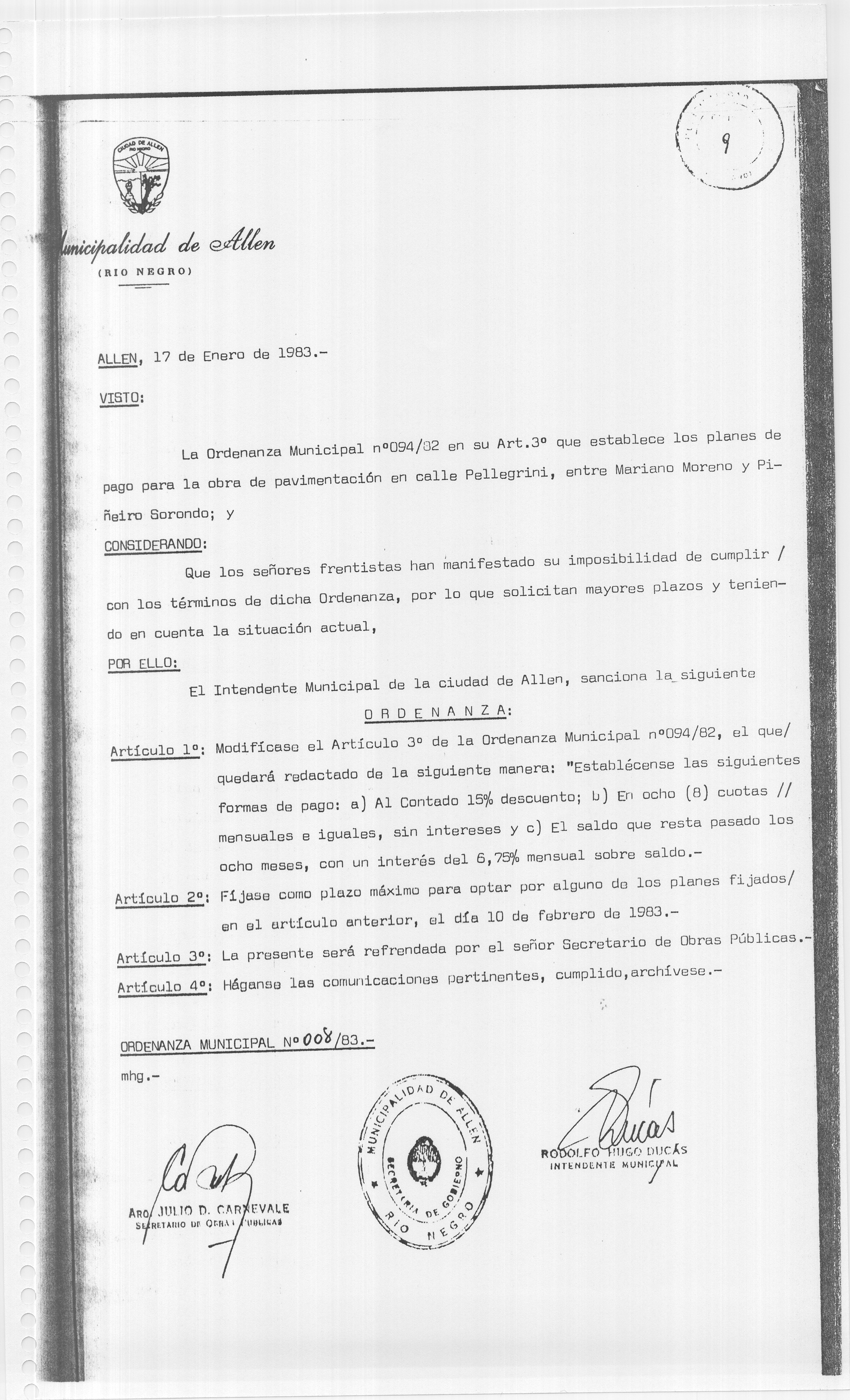 ORDENANZA N° 008/83