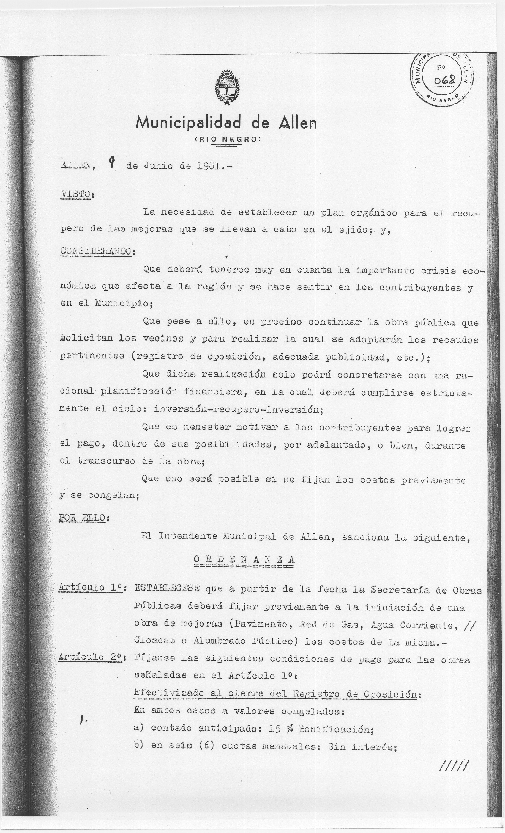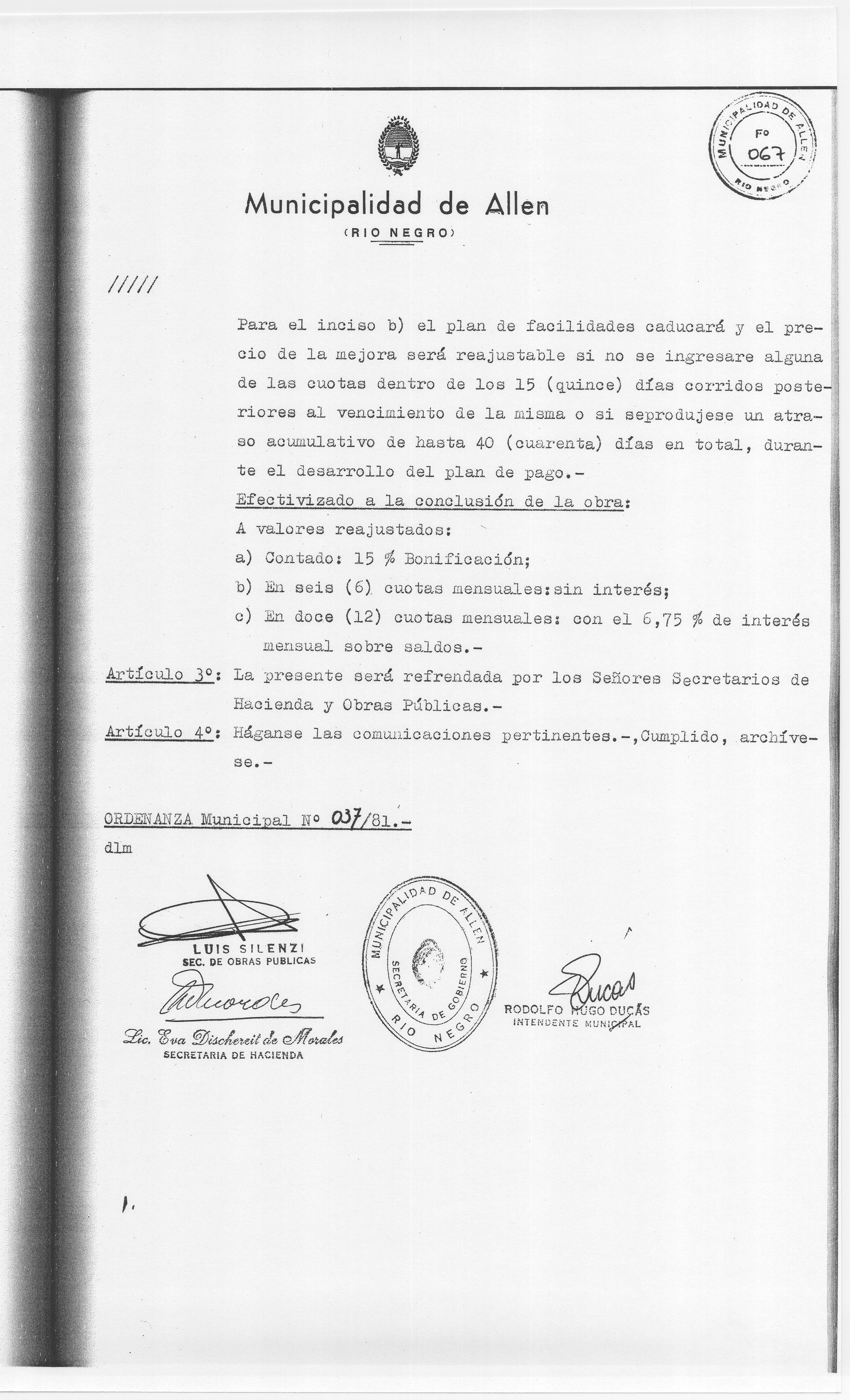 Usted seleccionó listar los archivos adjuntos de la ORDENANZA N° 037/81.