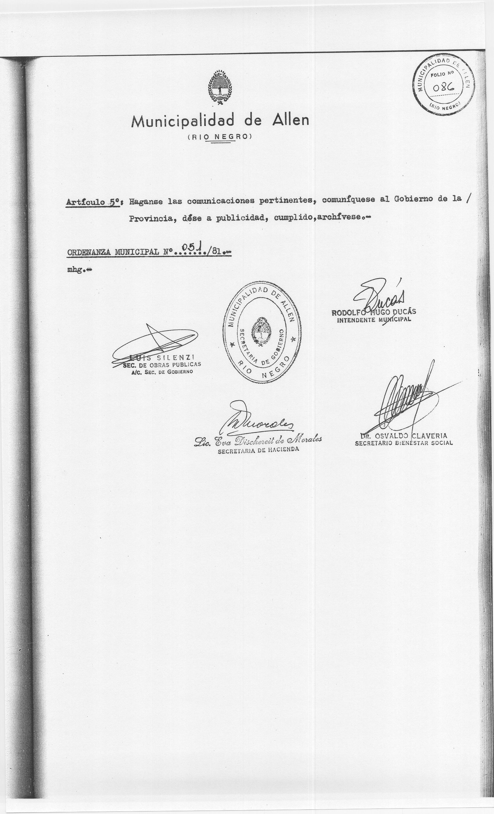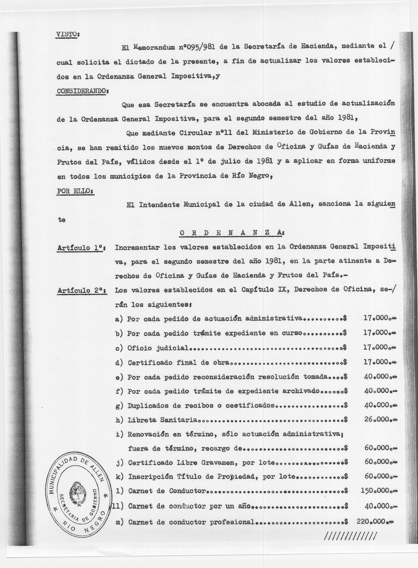 Usted seleccionó listar los archivos adjuntos de la ORDENANZA N° 051/81.