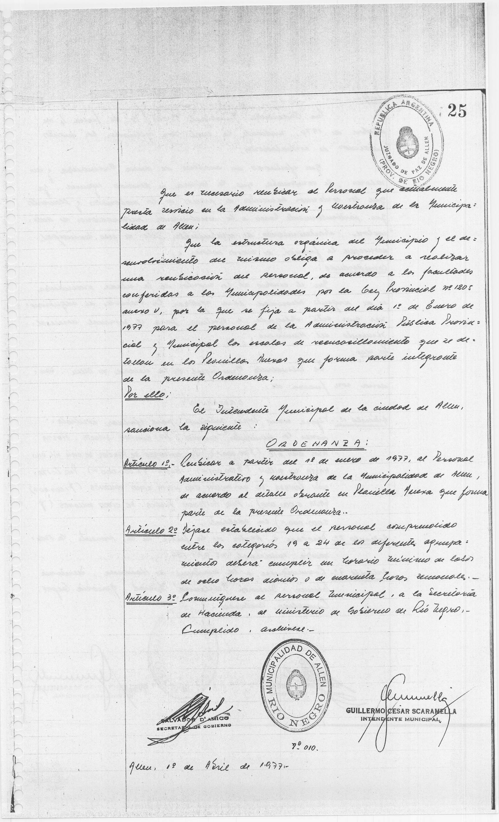 Usted seleccionó listar los archivos adjuntos de la ORDENANZA N° 010/77.