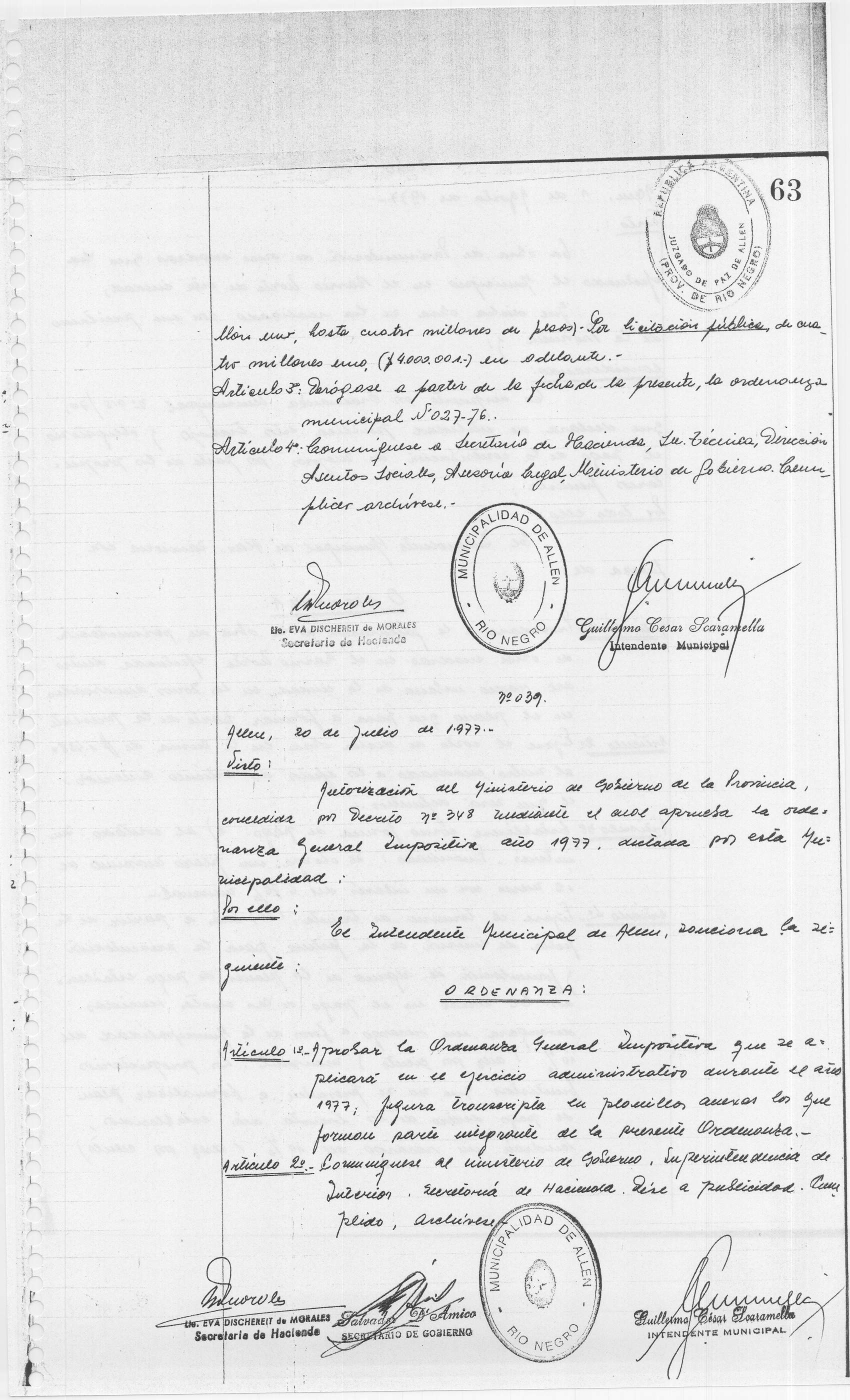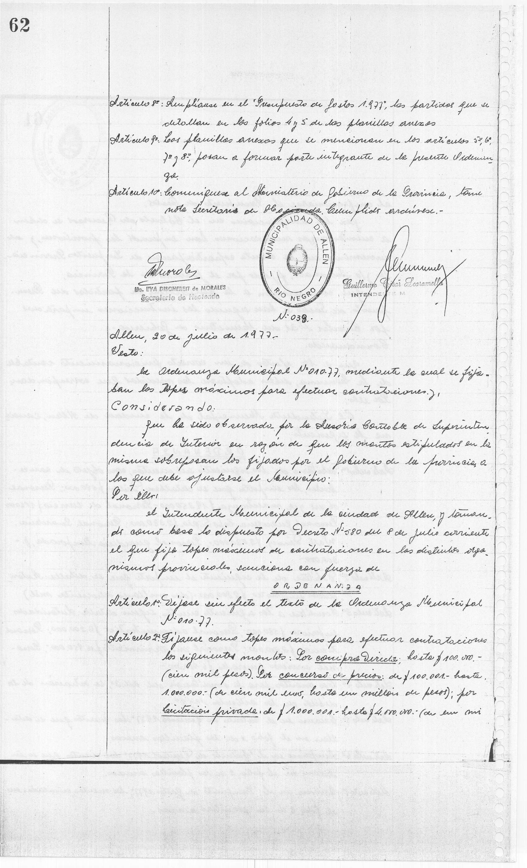 Usted seleccionó listar los archivos adjuntos de la ORDENANZA N° 038/77.