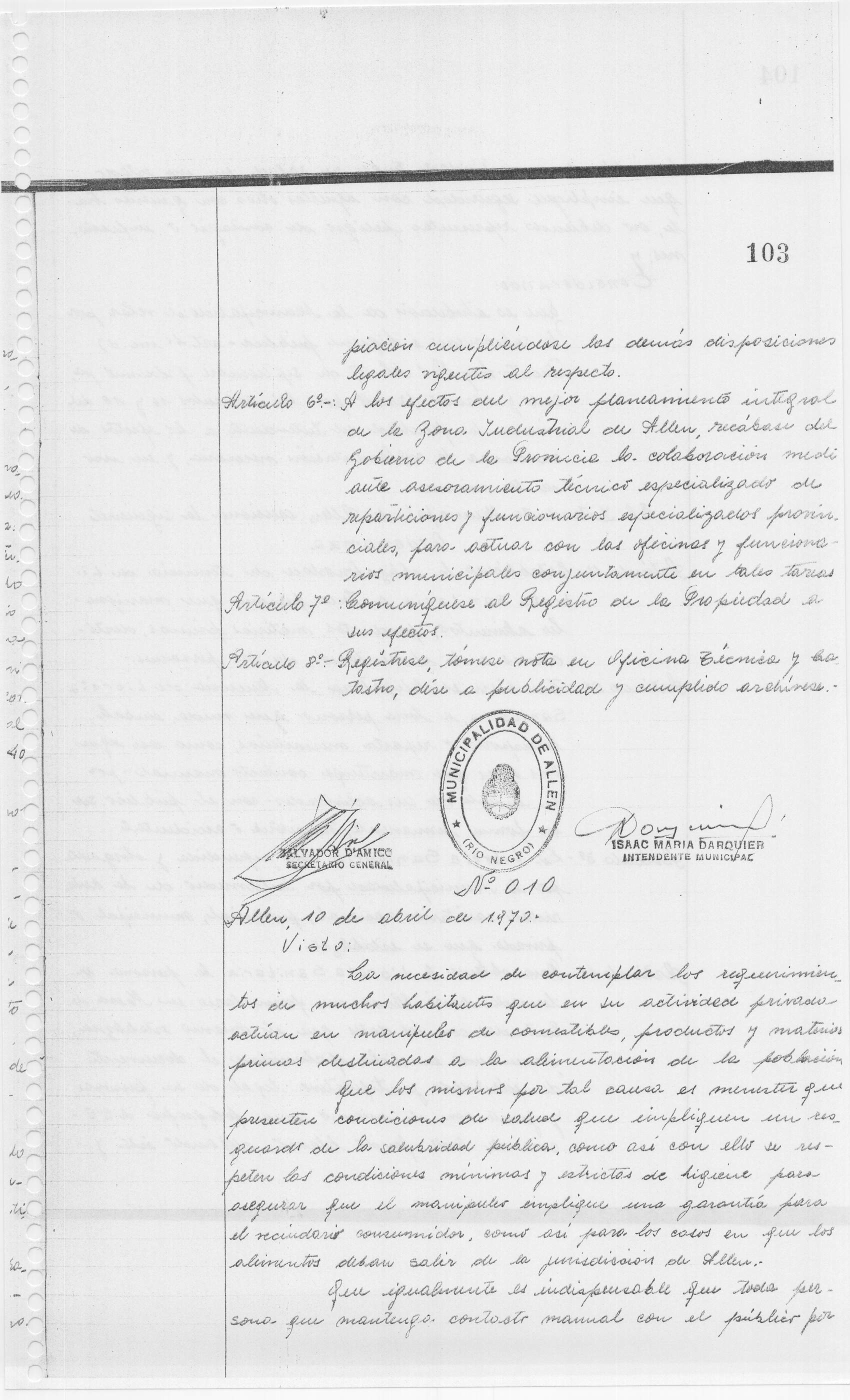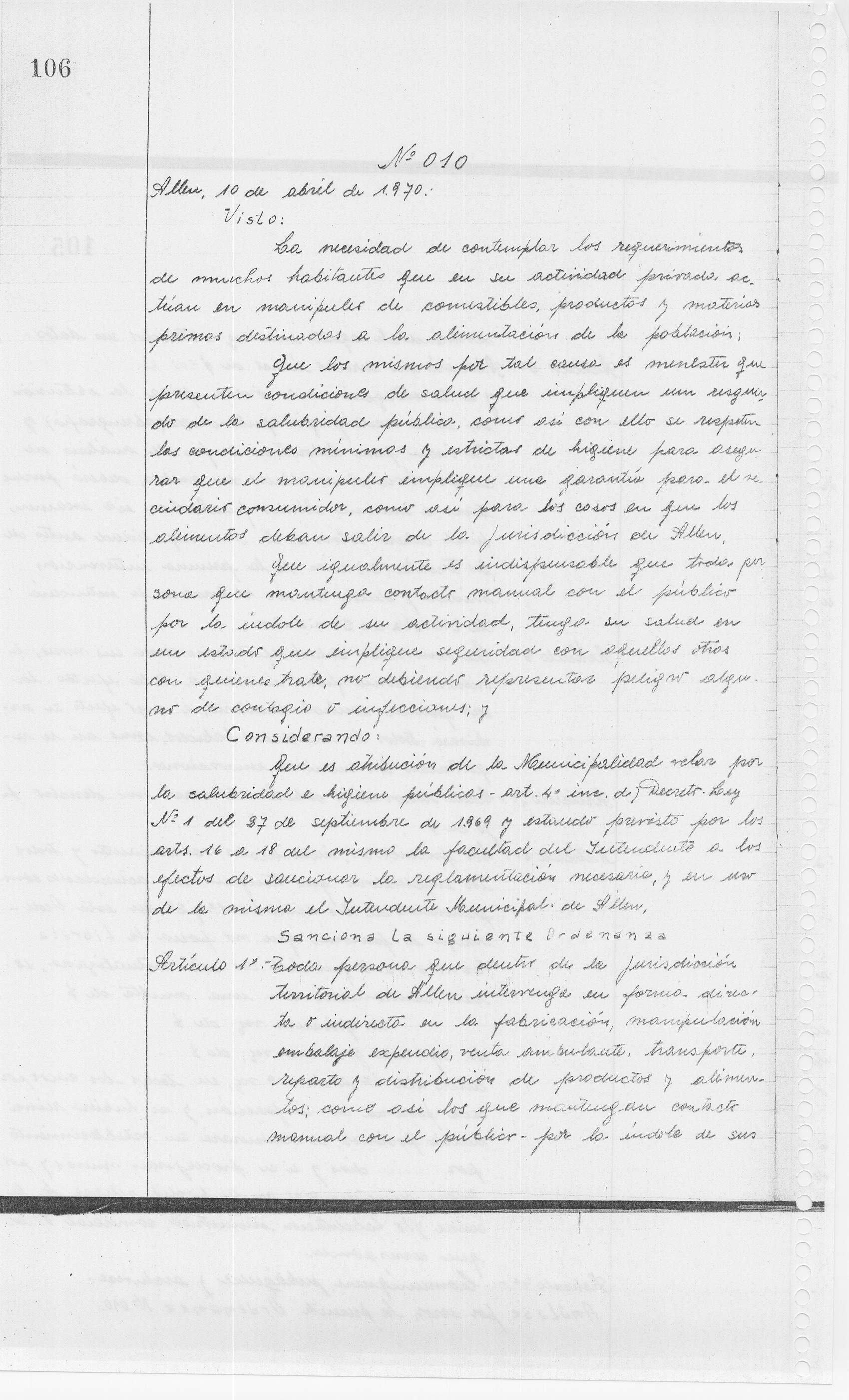 Usted seleccionó listar los archivos adjuntos de la ORDENANZA N° 010/70.